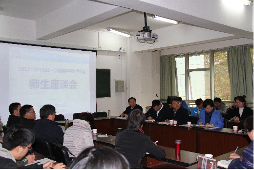 为提高教学质量,更好地完成学校教务处关于2017-2018学年第一学期期中教学检查要求,听取学生意见、加深师生关系,我院于11月23日中午1:00,在学院408教室召开期中教学检查师生座谈会。院长李烨、副院长宋山梅、院党委副书记张亚军出席会议,学院督导组老师,各教研室主任,教学科、学生科老师,及14-16级各班学生代表共40余人参加座谈会。会议由分管教学副院长宋山梅主持。