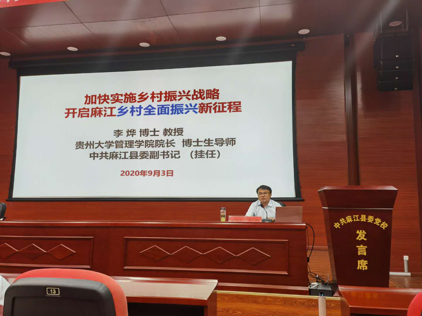 根据麻江县委组织部的培训需求开设了《加快实施乡村振兴战略 创麻江乡村高质量发展新局面》、《农村专业合作社如何规范高效发展及其在乡村振兴中发挥引领带动作用》、《农村一二三产融合发展与乡村振兴》、《推进脱贫攻坚与乡村振兴有机衔接的思路》以及《山地乡村产业振兴:案例、模式与方法》五门课程。旨在通过进行系统理论培训,帮助基层干部把握乡村振兴的核心要义、目标精髓,把思想引领变为行动自觉。通过理论培训、专题培训、示范班培训、研讨交流等方式,不断提升广大基层党员干部对乡村振兴战略的认识,提升广大基层党员干部在乡村振兴中干事创业的激情和能力,促进基层党员干部真正在学懂弄通、指导实践、推动振兴上下功夫,不断增强运用科学理论解决乡村振兴实际问题的能力,为乡村振兴提供干部队伍保障。
